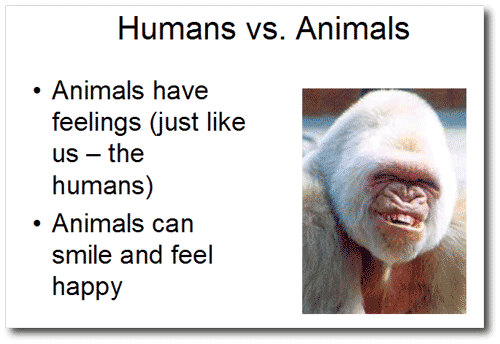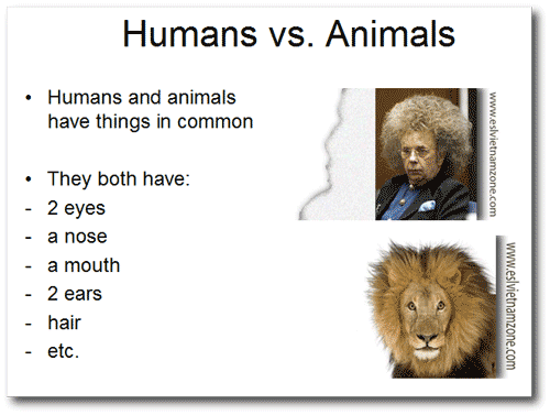 Explain to students that humans and animals have things in common. The first two slides of my presentation explain that. The teacher can assign a student to read the text from the presentation’s slide.