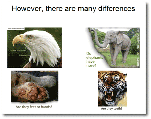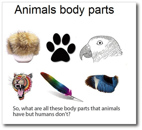 Next two slides point out that an animal doesn’t have teeth, hands etc.