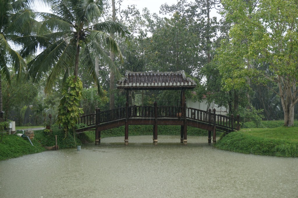 The extreme humidity and high temperature make us wish for a heavy rain, and we got what we wished for. The daily tropical rain started and we got trapped for almost two hours.