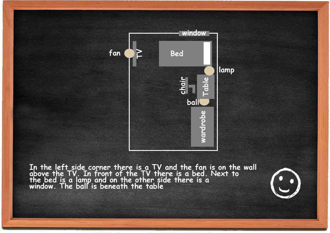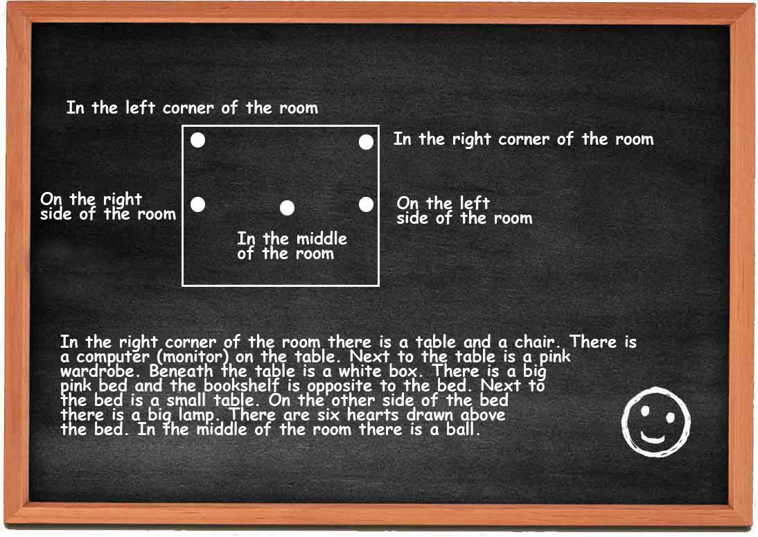 To make things even clearer I am going to describe my own bedroom and make a simple drawing on the board.