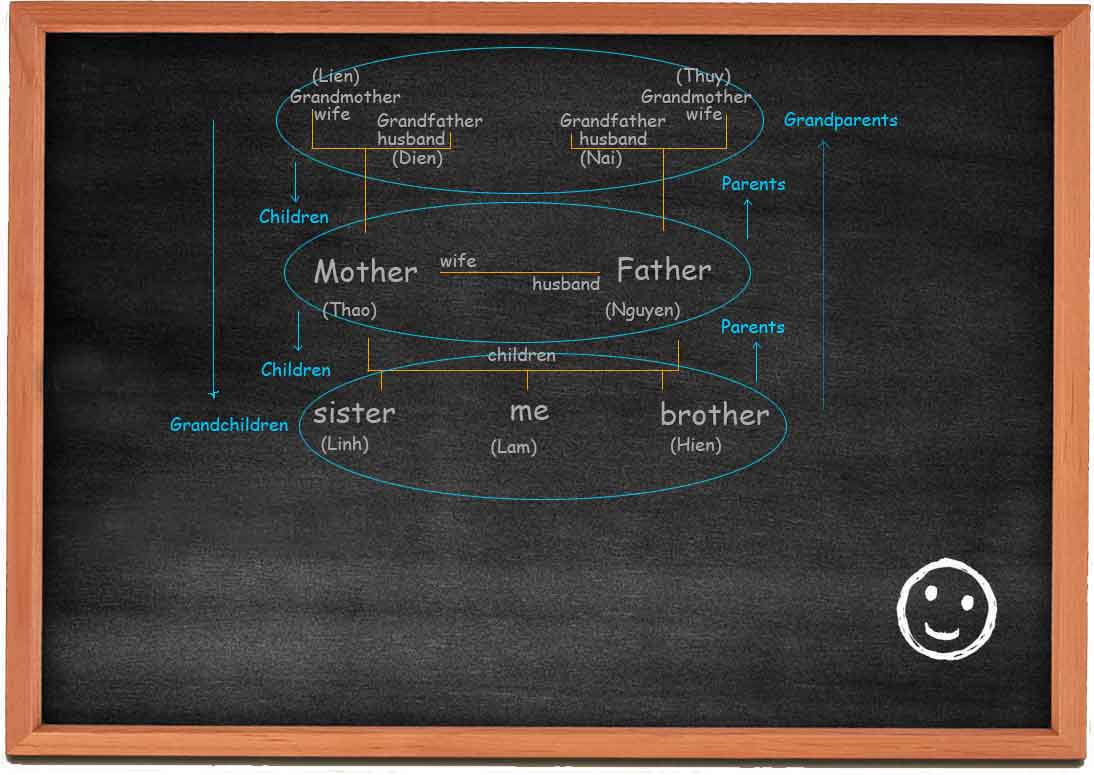 Be aware that in Vietnam, a cousin for example, is introduced as a brother/sister. Even a close friend is always introduced as a brother/sister. This is because the friendship is emphasized, not the family relation. The term “cousin” creates confusion and it is not used in daily life.