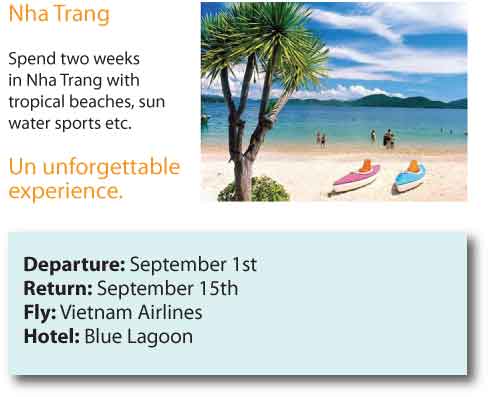 Individually, choose one vacation and answer to the questions below (Write down the questions and your answers). Ask your partner about his/her future vacation.